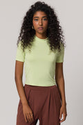 Aposte na leveza da blusa de manga curta em malha de microfibra. Macia e ajustada ao corpo, ela é uma escolha encantadora para o cotidiano.