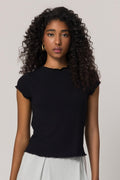 A Blusa de Manga Curta em Ribana com Gola Alta é sinônimo de modernidade e estilo. A gola alta transforma o básico em um visual marcante, ideal para combinações versáteis e sofisticadas. Sua modelagem slim realça a silhueta com conforto.