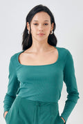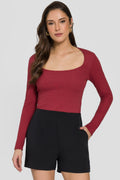 Blusa de Manga Longa em Ribana com Decote Quadrado