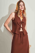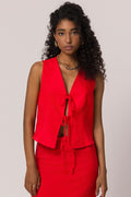 O Colete Alongado em Linho é a combinação ideal entre alfaiataria leve e estilo fresco. Com caimento solto, alça larga e amarração frontal em laços, ele finaliza o look com personalidade. Use com shorts, jeans ou vestido.