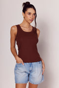 Regata em malha canelada de algodão com elastano, que garante conforto e excelente ajuste ao corpo. Possui decote arredondado e alças largas, proporcionando um visual moderno e versátil. O caimento apenas valoriza a silhueta sem marcar, ideal para compor desde produções básicas até especificações mais sofisticadas.