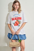 A camiseta oversized em meia malha traz o mood descomplicado dos dias leves. A modelagem ampla veste com atitude e conforto. A estampa ilustrada adiciona um toque divertido à produção.