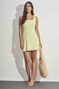 Vestido curto em ribana com decote quadrado